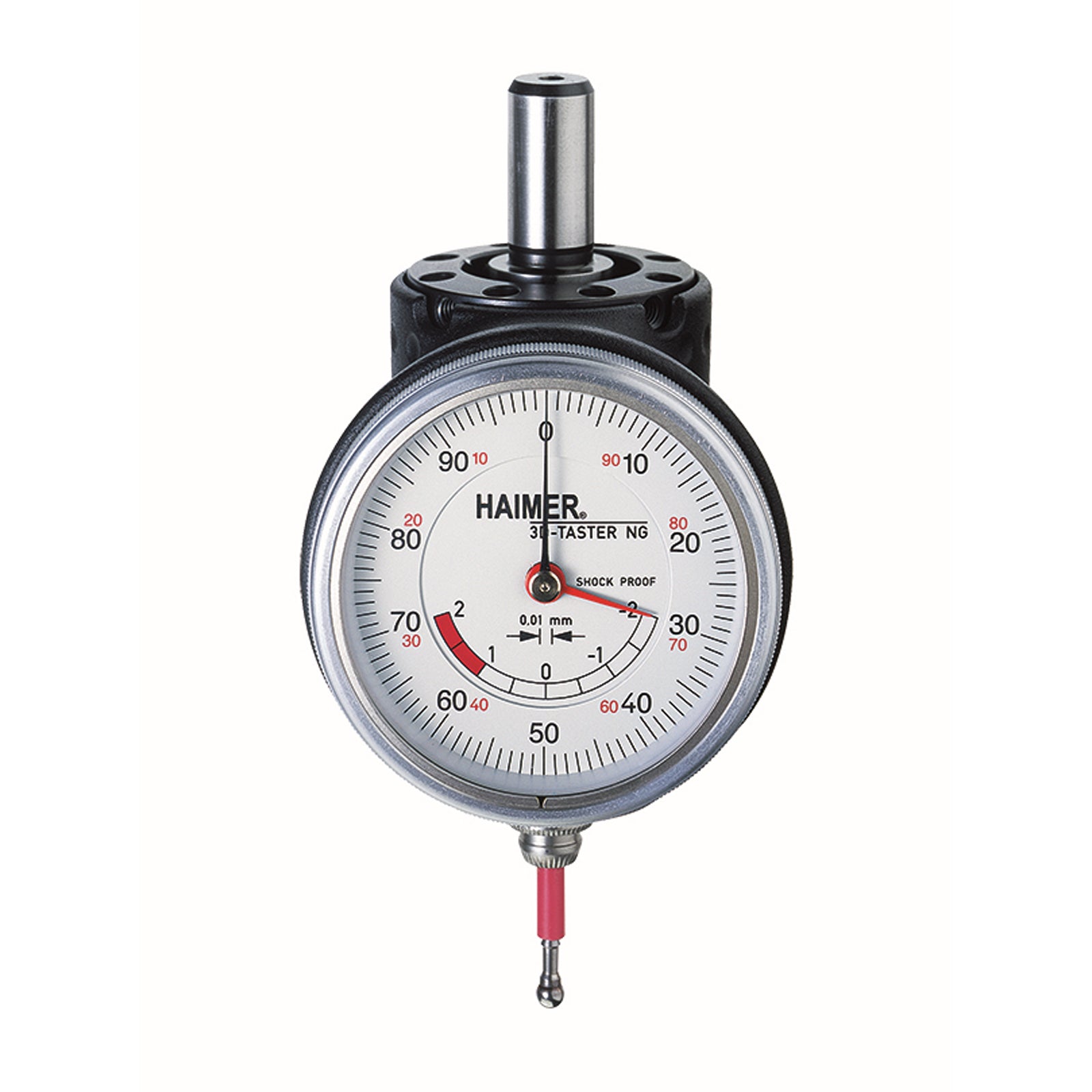 • Precise display of spindle position with large 1/100 mm dial gauge (2 hands).