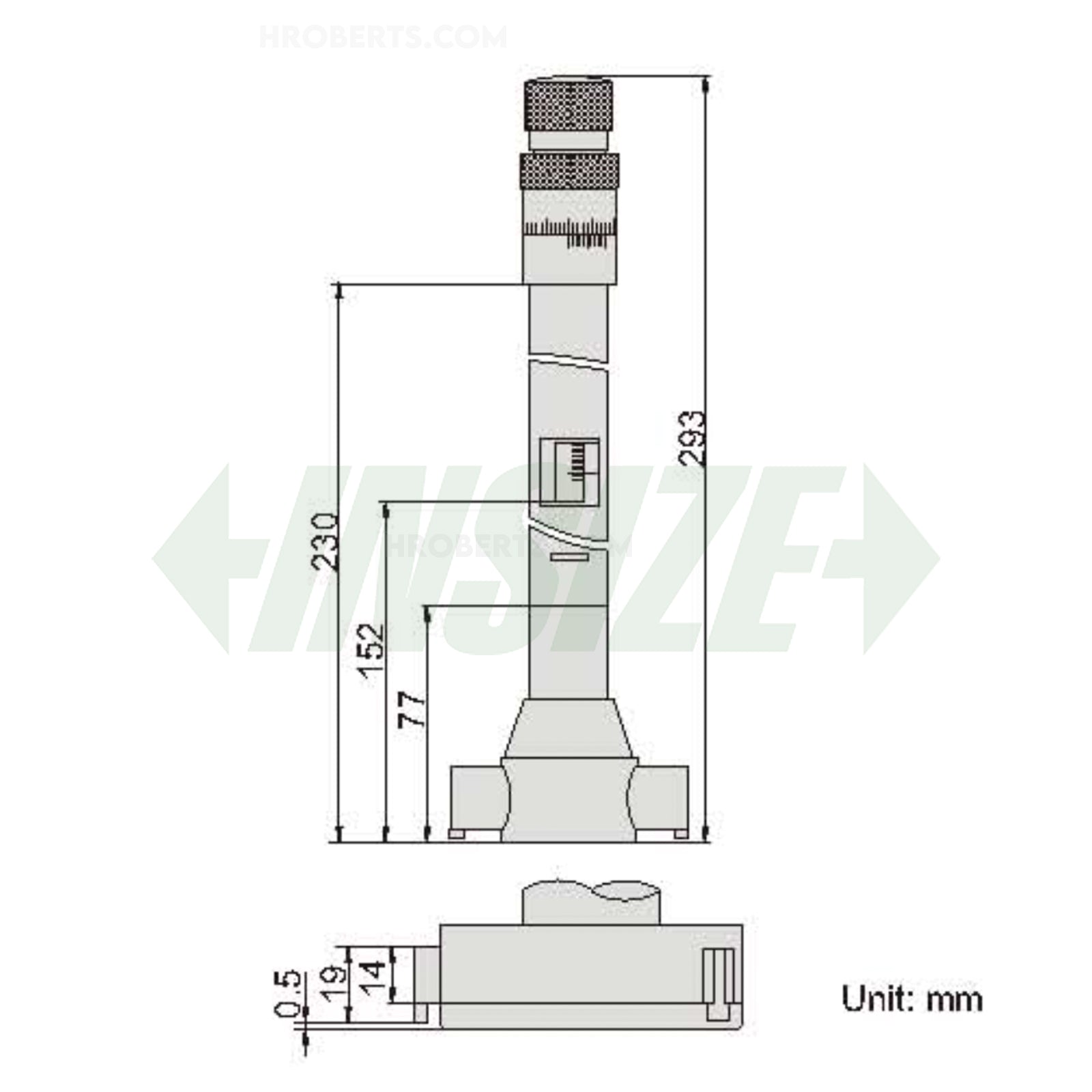 The Insize 3228 Wide range Internal micrometer with 3 point measurement. With ratchet stop and carbide measuring faces create a durable, ware resistant tool which allows for repeated measurements.