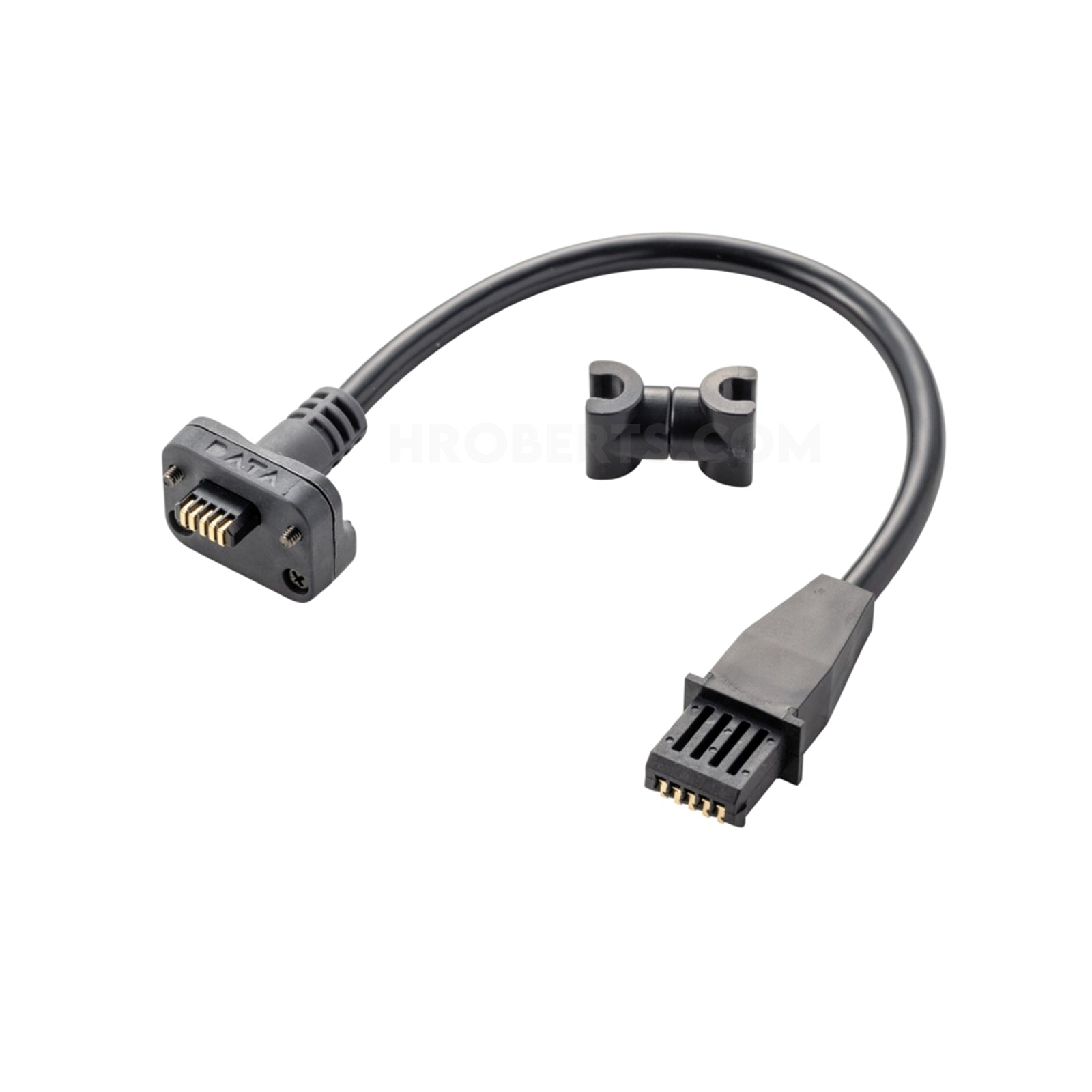 A Mitutoyo standard U-WAVE SPC data cable with a straight, flat connector (F) to suit compatible measuring tools. Connects a measuring tool fitted with a data socket as shown in the photograph to a U-WAVE transmitter.