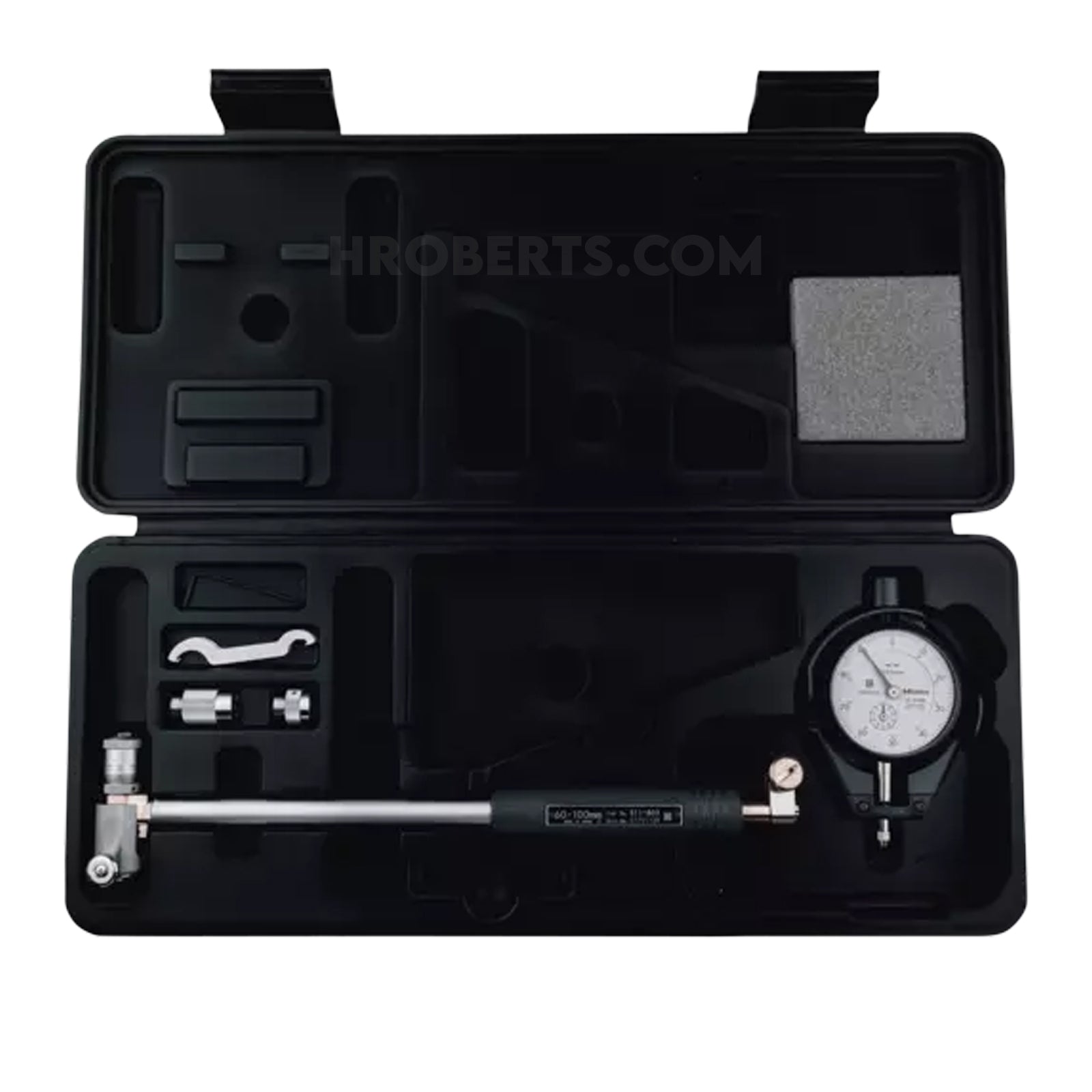 Micrometer head is attached to the anvil for convenient and accurate dimensional setting. Now offers a longer plunger stroke while maintaining original accuracy. Carbide is used for the contact point ensuring high durability and wear resistance. High-accuracy measurement is aided by a large grip with a sponge-like structure that reduces heat transfer from the operator’s hand by 50%. Wide measuring range with sub-anvils. Optional extension rods can be attached for measuring deep holes. An optional inside-length standard, such as a setting ring or Inside Micro Checker is required for accurately setting the gauge before measurement.