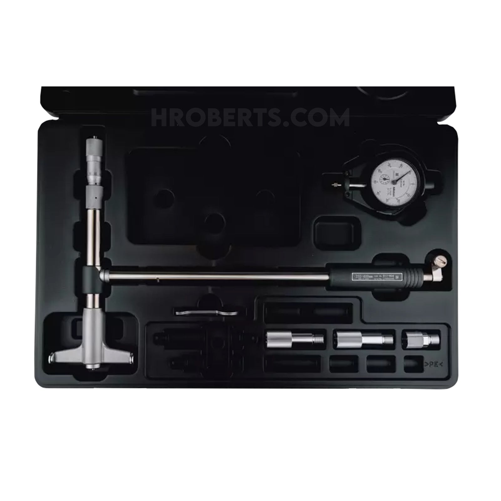 Micrometer head is attached to the anvil for convenient and accurate dimensional setting. Now offers a longer plunger stroke while maintaining original accuracy. Carbide is used for the contact point ensuring high durability and wear resistance. High-accuracy measurement is aided by a large grip with a sponge-like structure that reduces heat transfer from the operator’s hand by 50%. Wide measuring range with sub-anvils. Optional extension rods can be attached for measuring deep holes. An optional inside-length standard, such as a setting ring or Inside Micro Checker is required for accurately setting the gauge before measurement.
