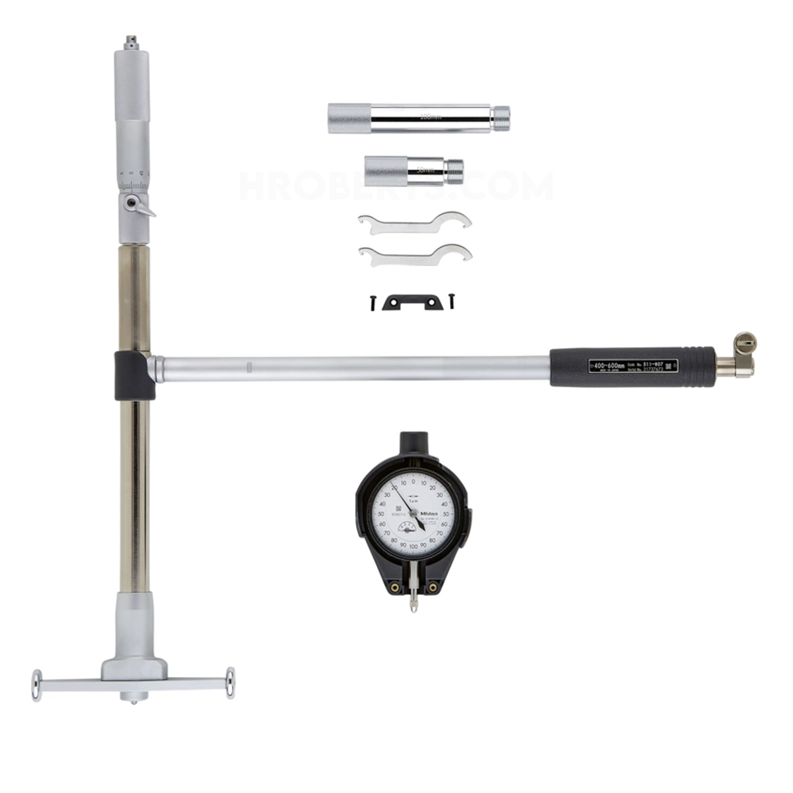 Micrometer head is attached to the anvil for convenient and accurate dimensional setting. Now offers a longer plunger stroke while maintaining original accuracy. Carbide is used for the contact point ensuring high durability and wear resistance. High-accuracy measurement is aided by a large grip with a sponge-like structure that reduces heat transfer from the operator’s hand by 50%. Wide measuring range with sub-anvils. Optional extension rods can be attached for measuring deep holes. An optional inside-length standard, such as a setting ring or Inside Micro Checker is required for accurately setting the gauge before measurement.
