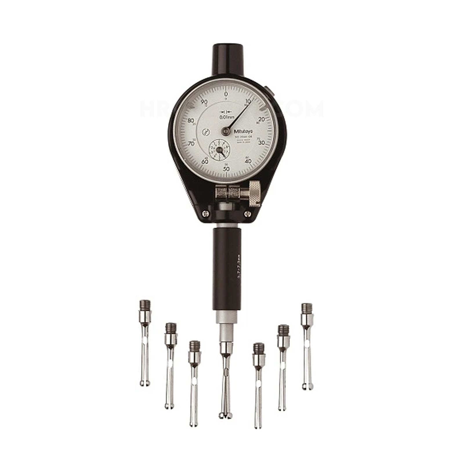 This gauge is designed to measure the diameters of very small holes. The radial displacement of the split-ball anvil is converted to axial displacement of the measuring rod, which is shown on the dial indicator. An optional stand (215-120-10) is available for efficient measurement of multiple small holes.